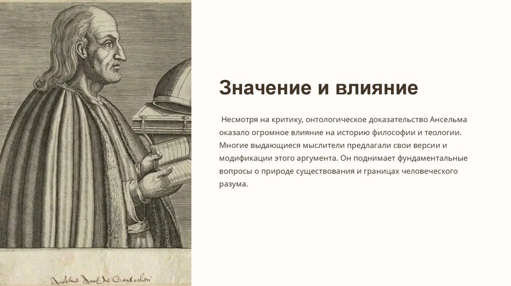 Значение и влияниеНесмотря на критику, онтологическое доказательство Ансельма