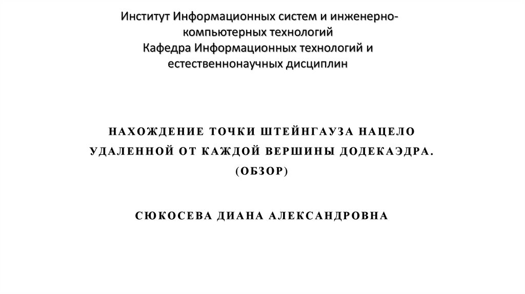 1. Институт Информационных систем и инженерно-компьютерных технологий Кафедра Информационных технологий и естественнонаучных