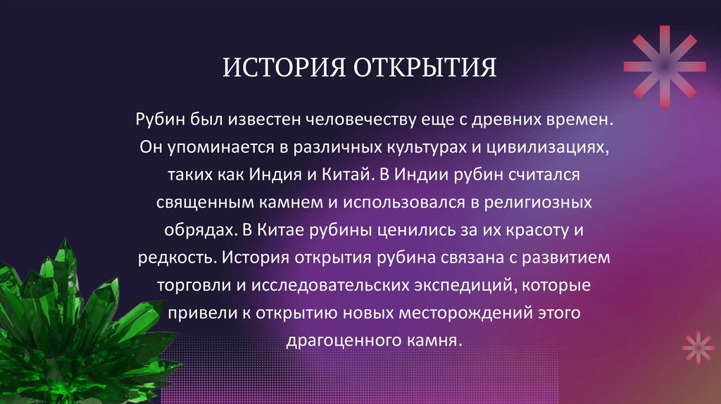 ИСТОРИЯ ОТКРЫТИЯРубин был известен человечеству еще с древних времен.
