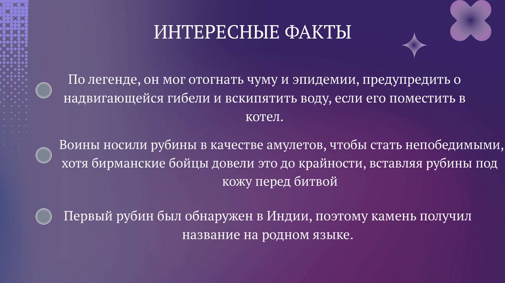 Первый рубин был обнаружен в Индии, поэтому камень получил
