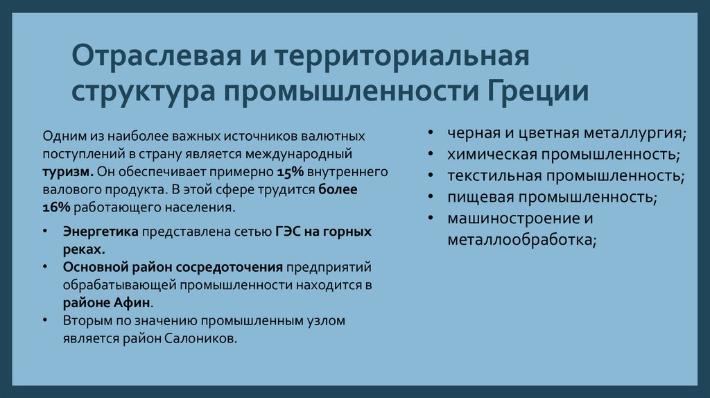 • В Греции также производят строительныематериалы, в том числе цемент.