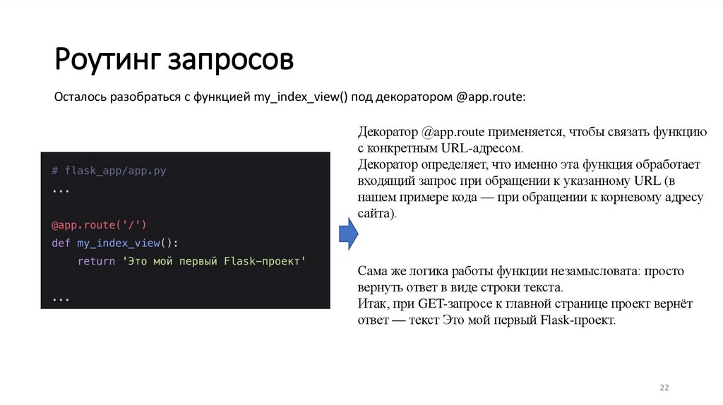 Осталось разобраться с функцией my_index_view() под декоратором @app.route:Декоратор @app.route применяется, чтобы связать функцию