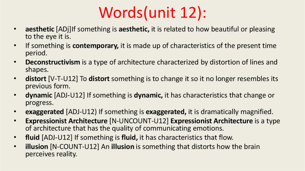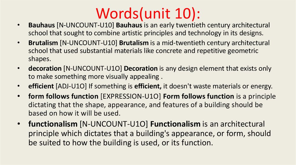 Expressionist Architecture [N-UNCOUNT-U12] Expressionist Architecture is a type