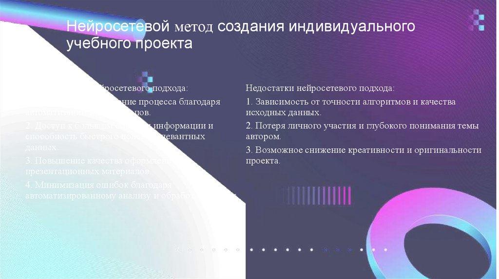 Нейросетевой метод создания индивидуальногоучебного проекта