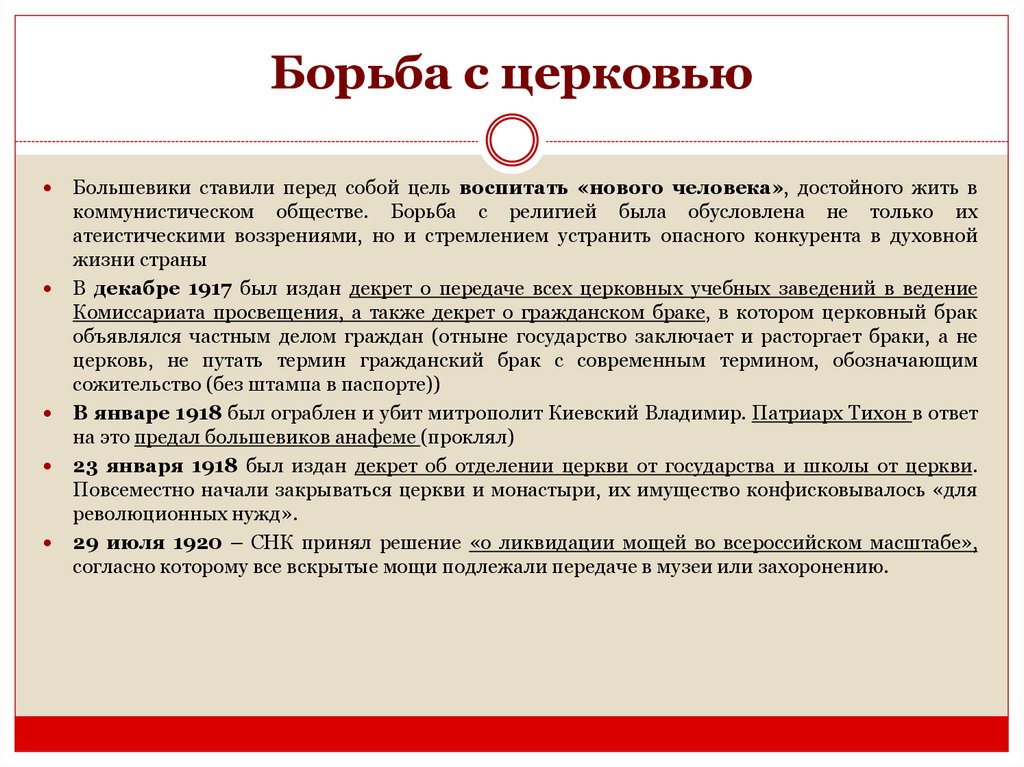 Большевики ставили перед собой цель воспитать «нового человека», достойного жить вкоммунистическом обществе. Борьба с религией была обусловлена не только их