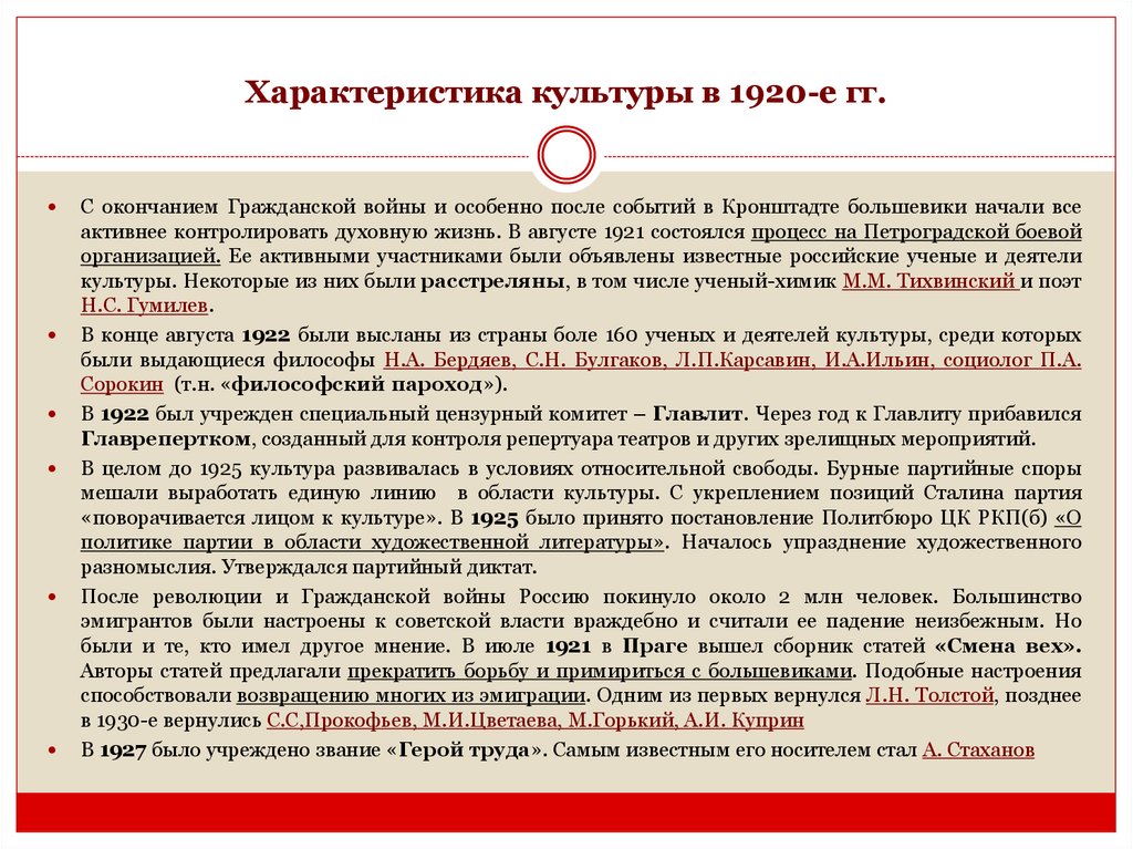 В целом до 1925 культура развивалась в условиях относительной свободы. Бурные партийные споры