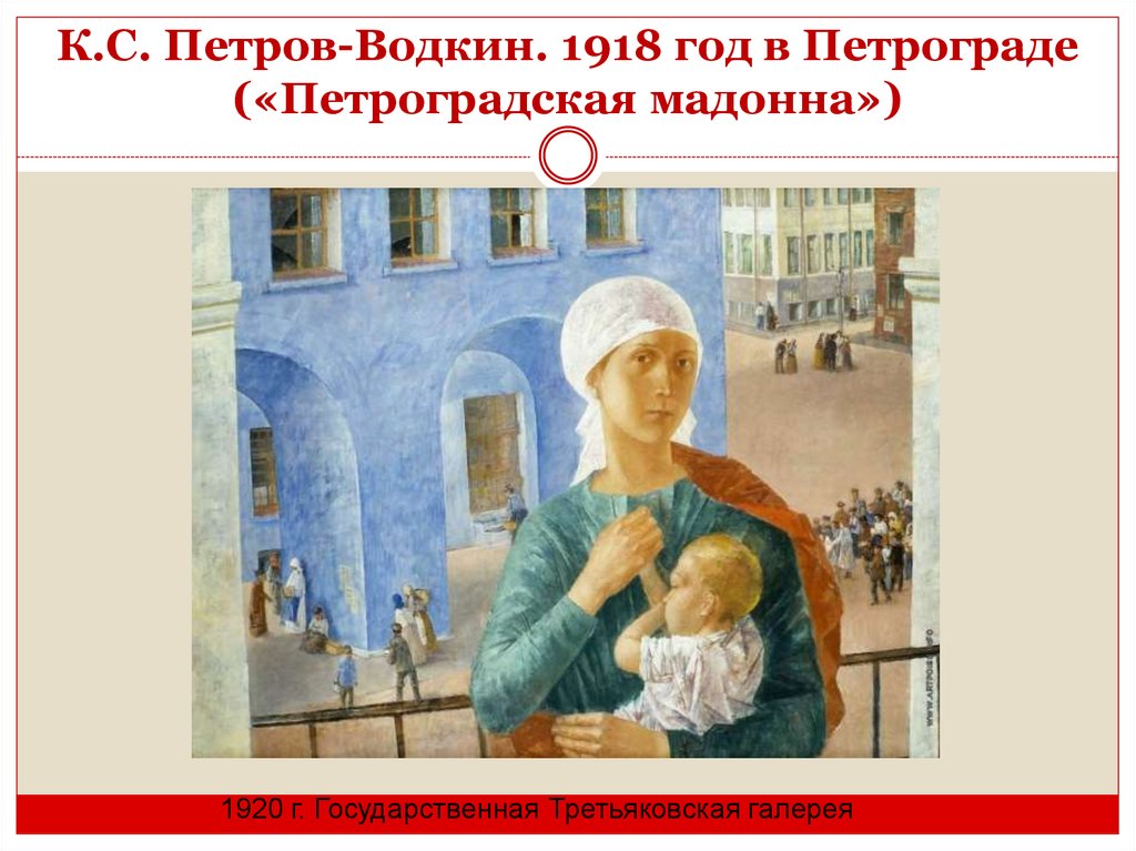 картинах К.С. Петрова-Водкина («1918 год в Петрограде») и Б.М. Кустодиева («Большевик»), в