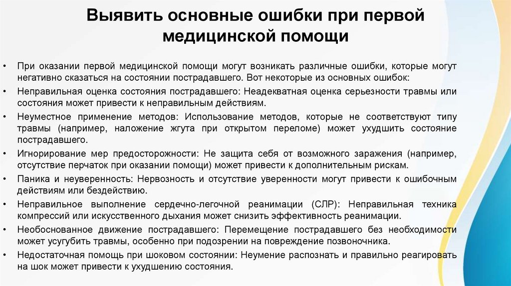 При оказании первой медицинской помощи могут возникать различные ошибки, которые могут