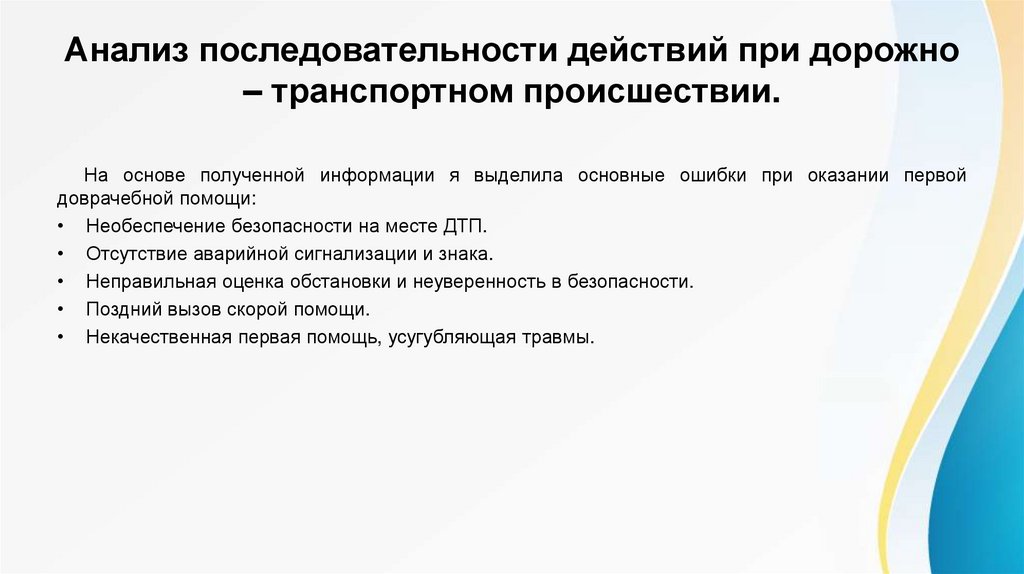 9. Анализ последовательности действий при дорожно – транспортном происшествии.