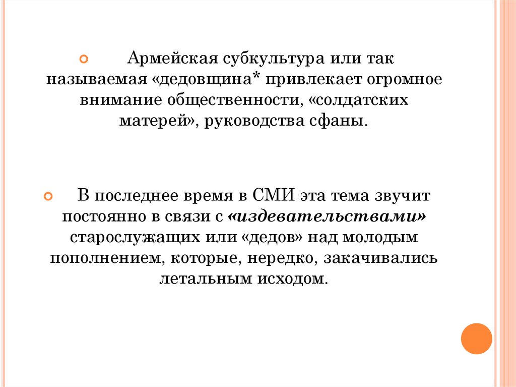 Армейская субкультура или такназываемая «дедовщина* привлекает огромное
