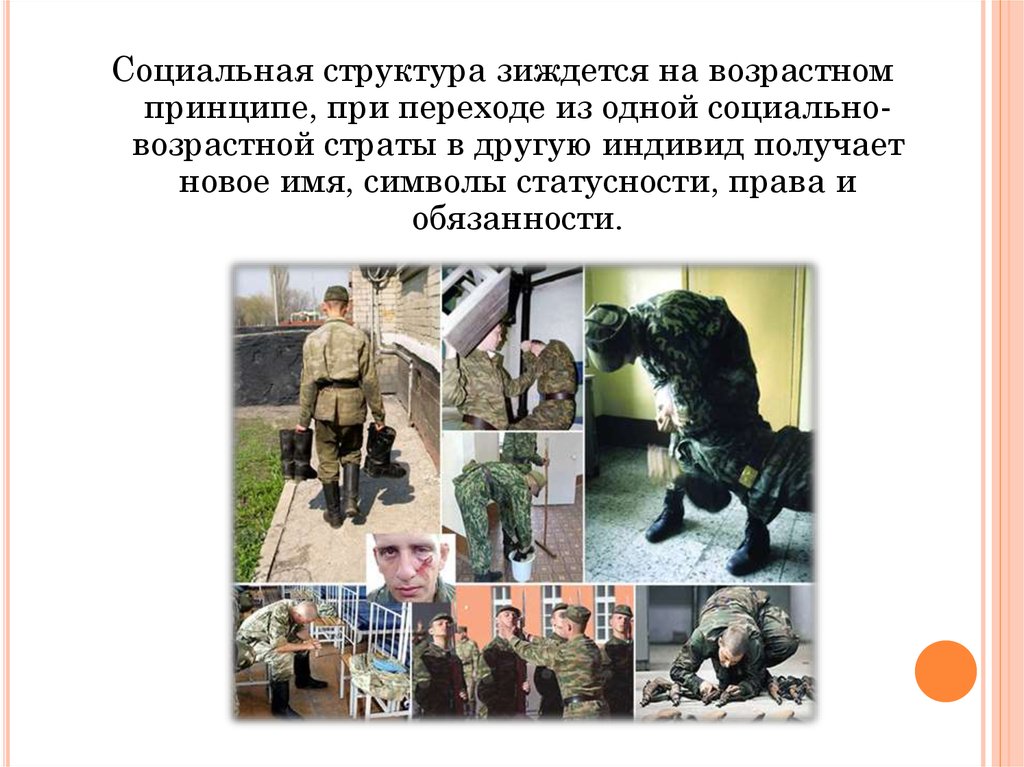 Социальная структура зиждется на возрастномпринципе, при переходе из одной социальновозрастной страты в другую индивид получает