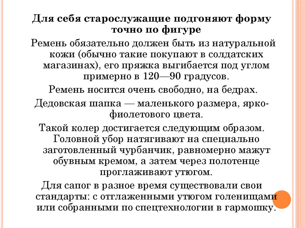 Для себя старослужащие подгоняют формуточно по фигуре