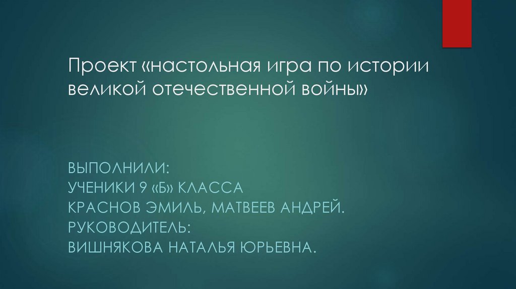 1. Проект «настольная игра по истории великой отечественной войны»