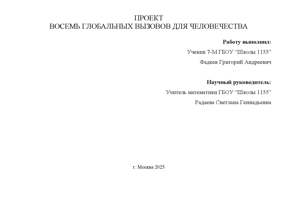 ПРОЕКТВОСЕМЬ ГЛОБАЛЬНЫХ ВЫЗОВОВ ДЛЯ ЧЕЛОВЕЧЕСТВА