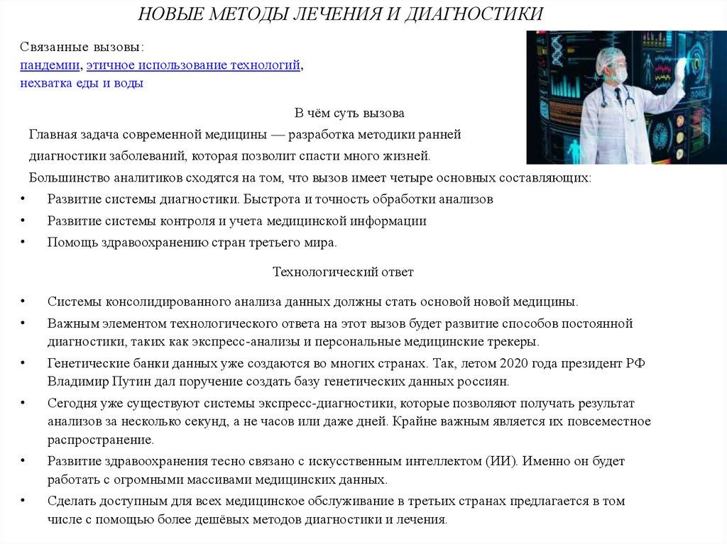 НОВЫЕ МЕТОДЫ ЛЕЧЕНИЯ И ДИАГНОСТИКИСвязанные вызовы: