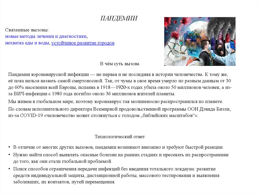ПАНДЕМИИСвязанные вызовы: