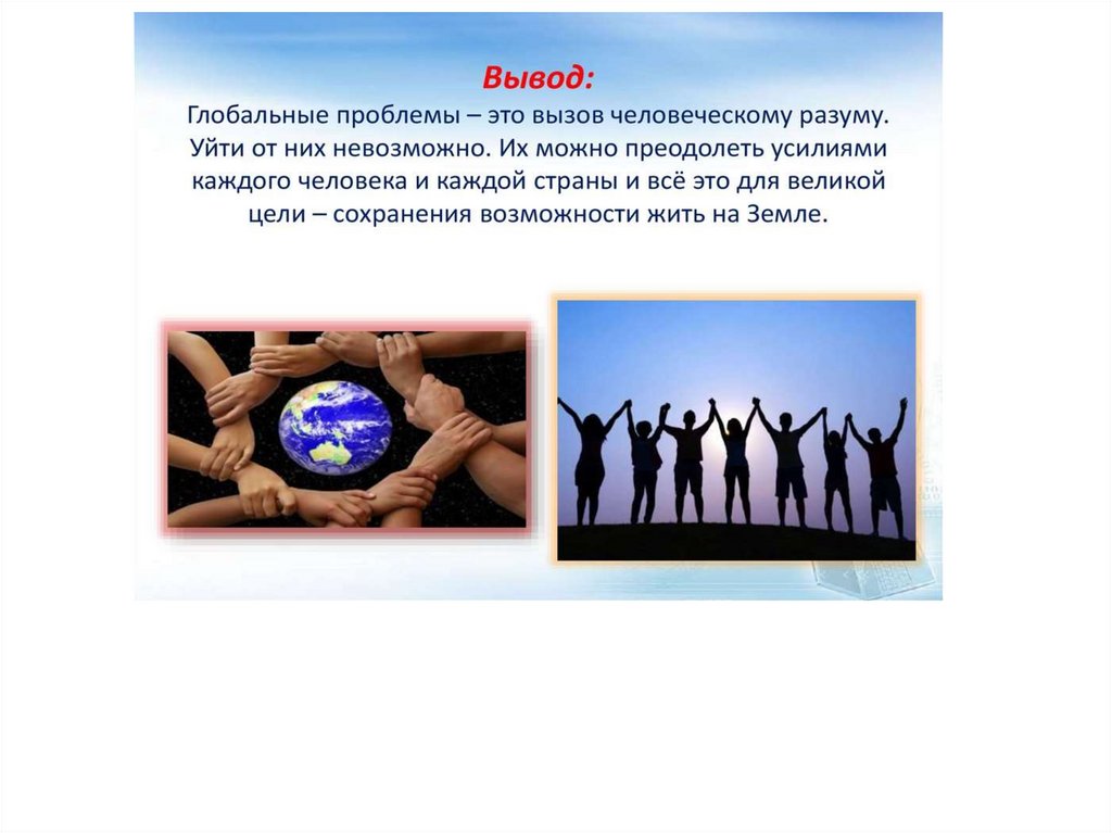 Задачи: дать характеристику глобальных проблем и возможные варианты решения.