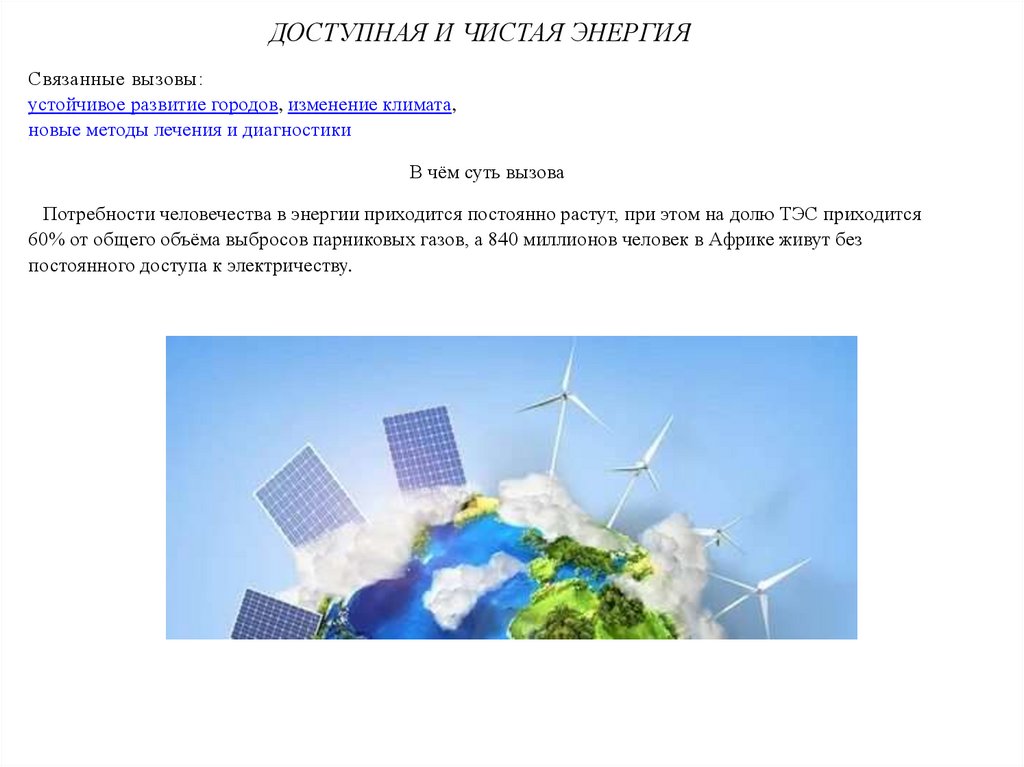 ДОСТУПНАЯ И ЧИСТАЯ ЭНЕРГИЯСвязанные вызовы:
