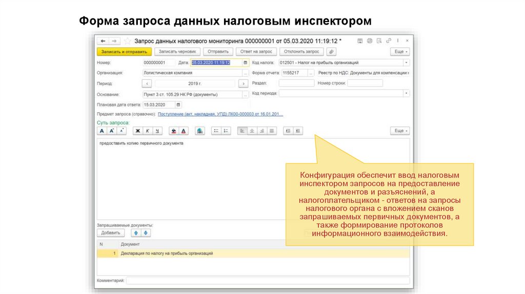 Форма запроса данных налоговым инспекторомКонфигурация обеспечит ввод налоговым