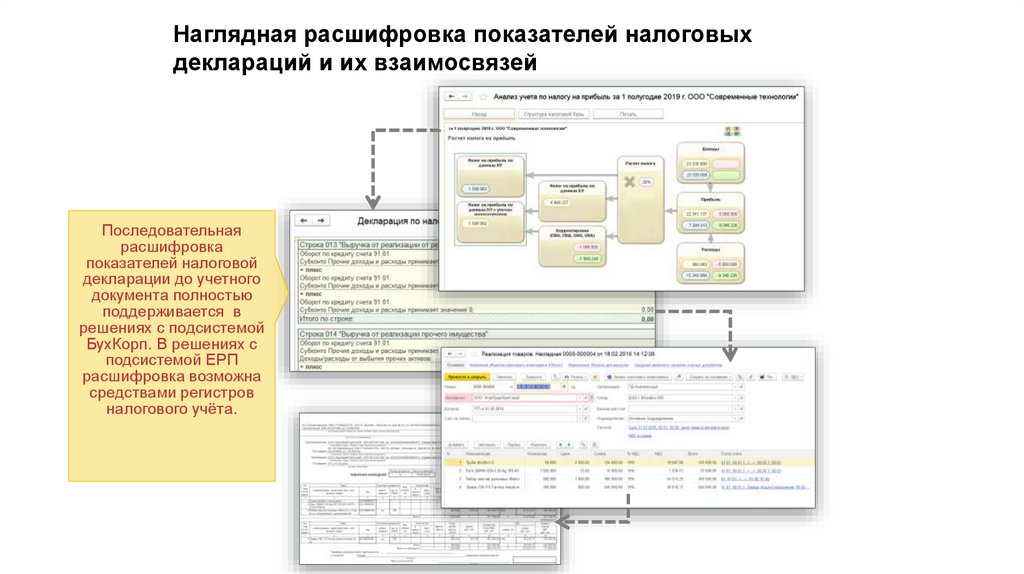 Наглядная расшифровка показателей налоговыхдеклараций и их взаимосвязей