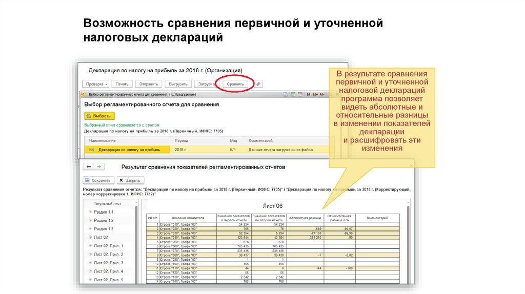 Возможность сравнения первичной и уточненнойналоговых деклараций