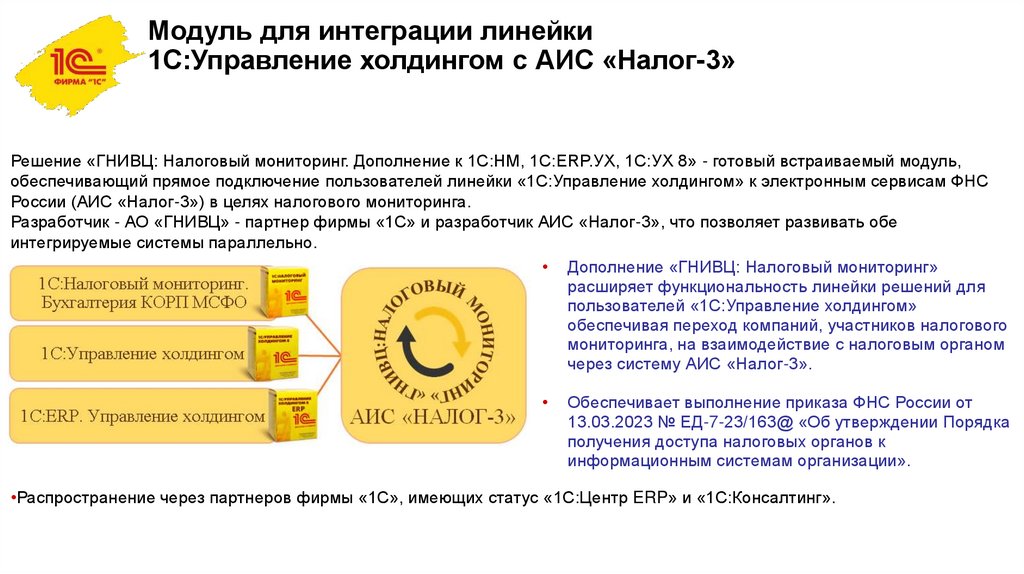 Модуль для интеграции линейки1С:Управление холдингом с АИС «Налог-3»