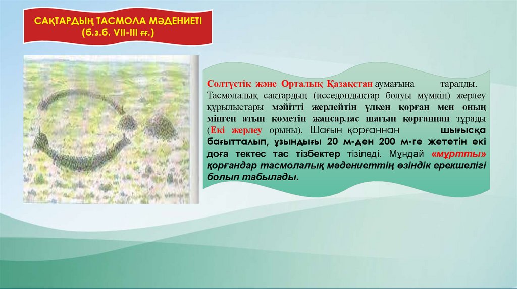 САҚТАРДЫҢ ТАСМОЛА МӘДЕНИЕТІ(б.з.б. VII-III ғғ.)