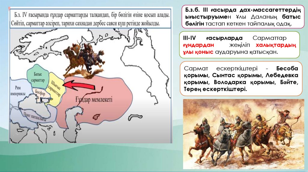 Б.з.б. ІІІ ғасырда дах-массагеттердіңығыстыруымен Ұлы Даланың батыс