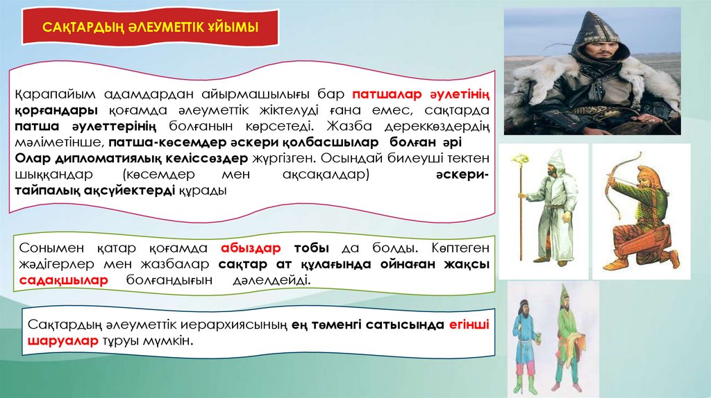 САҚТАРДЫҢ ӘЛЕУМЕТТІК ҰЙЫМЫҚарапайым адамдардан айырмашылығы бар патшалар әулетінің