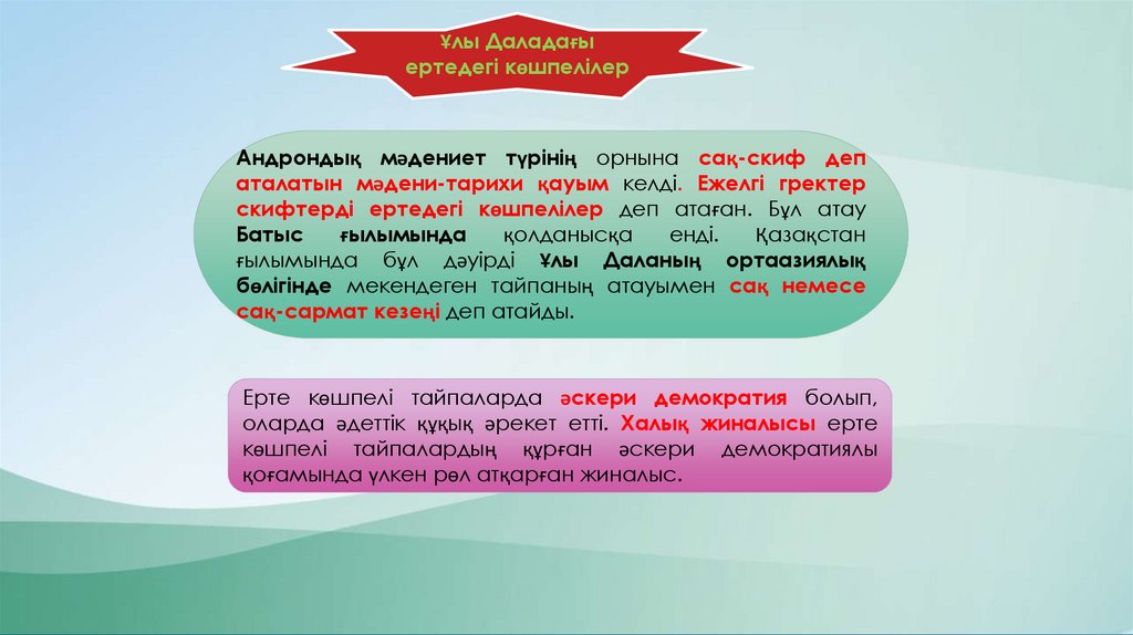 ЕРТЕ КӨШПЕЛІЛЕР ДӘУІРІНДЕГІҰЛЫ ДАЛА ӨРКЕНИЕТІ