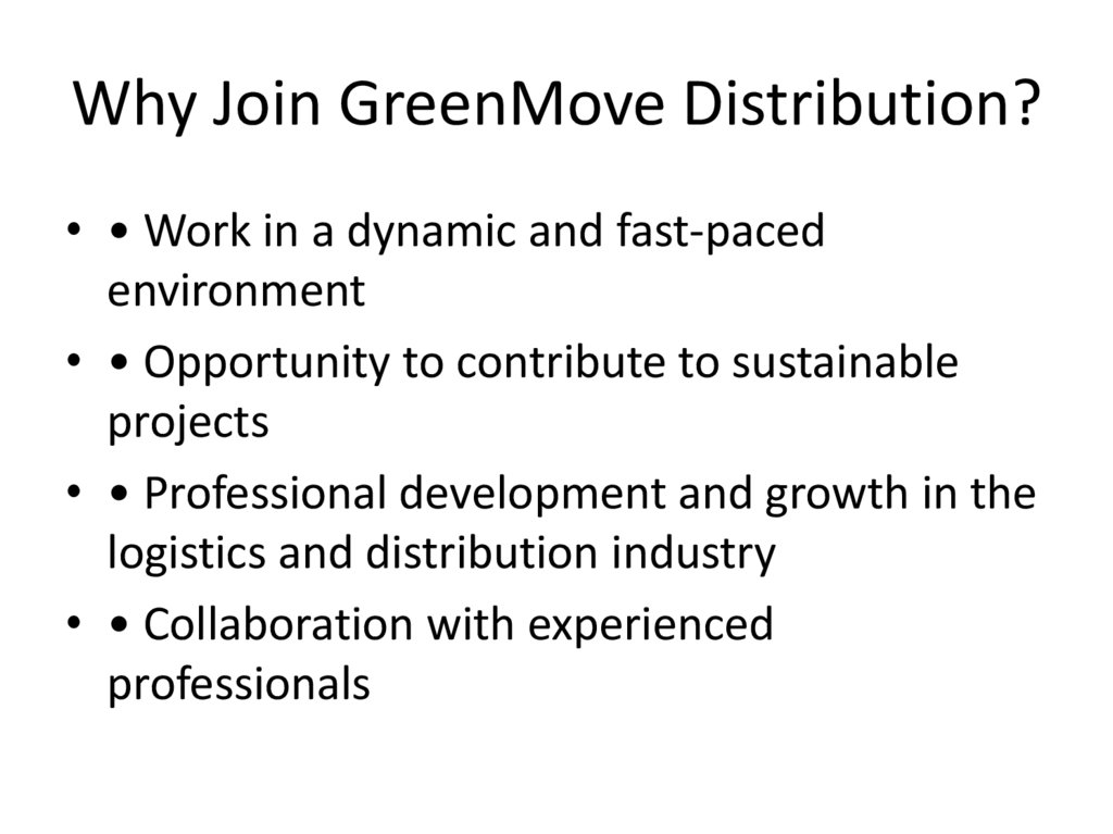 Why Join GreenMove Distribution?• • Work in a dynamic and fast-paced