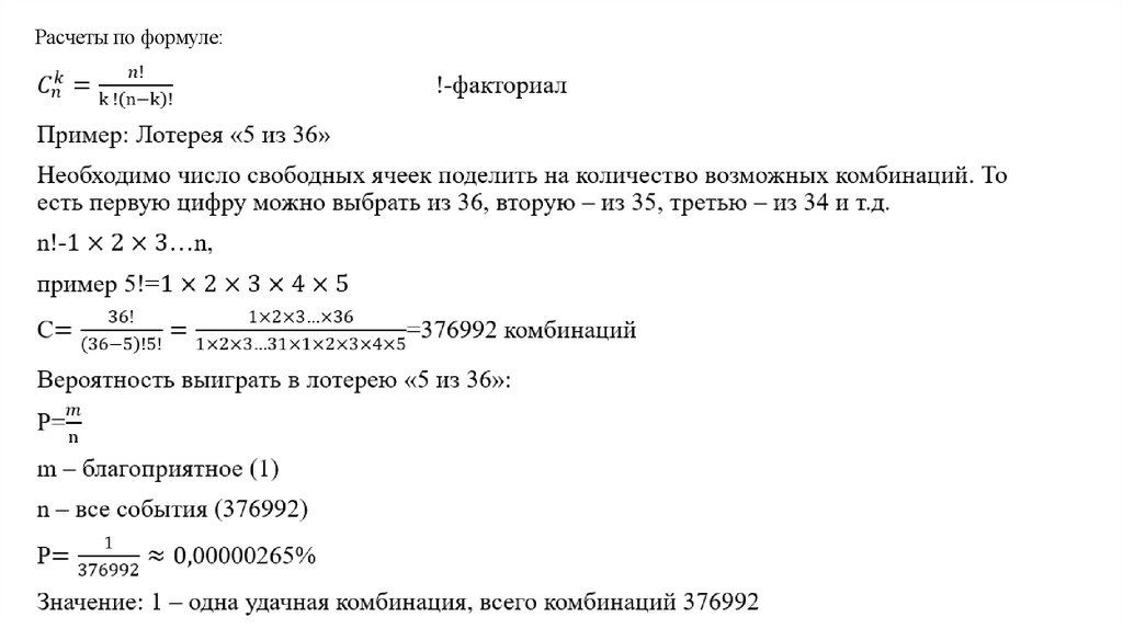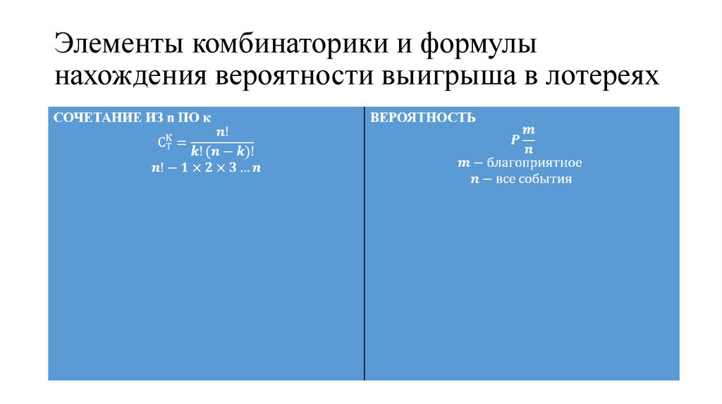Элементы комбинаторики и формулынахождения вероятности выигрыша в лотереях