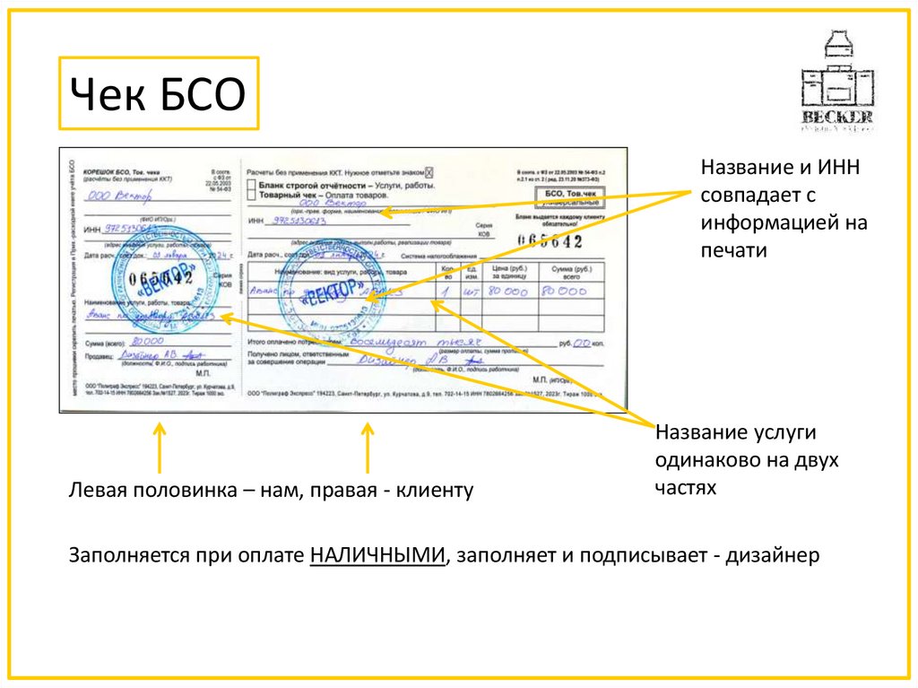 Заполняется при оплате НАЛИЧНЫМИ, заполняет и подписывает - дизайнер