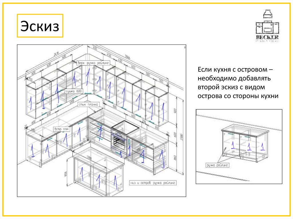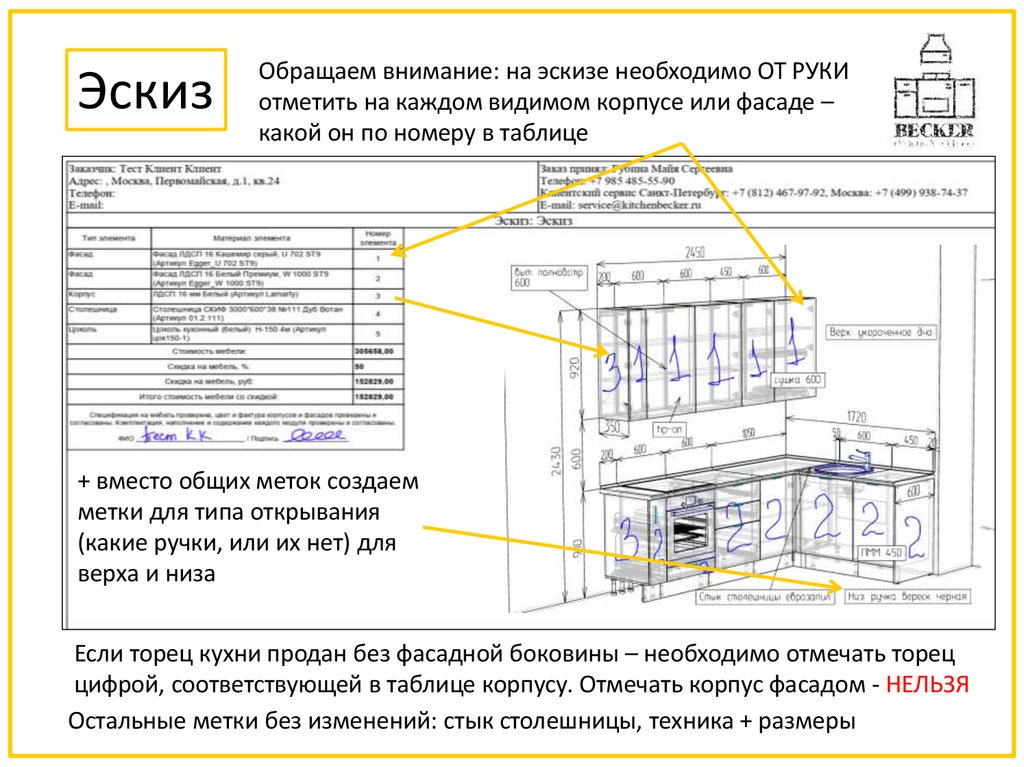 Если торец кухни продан без фасадной боковины – необходимо отмечать торец