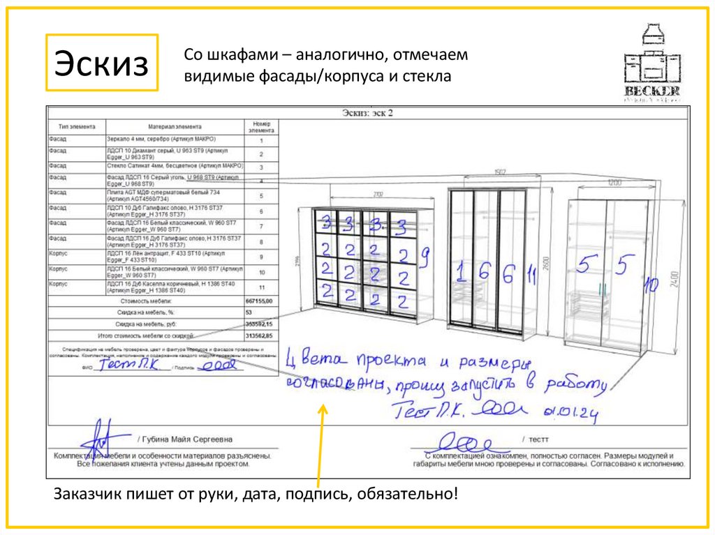 ЭскизЗаказчик пишет от руки, дата, подпись, обязательно!