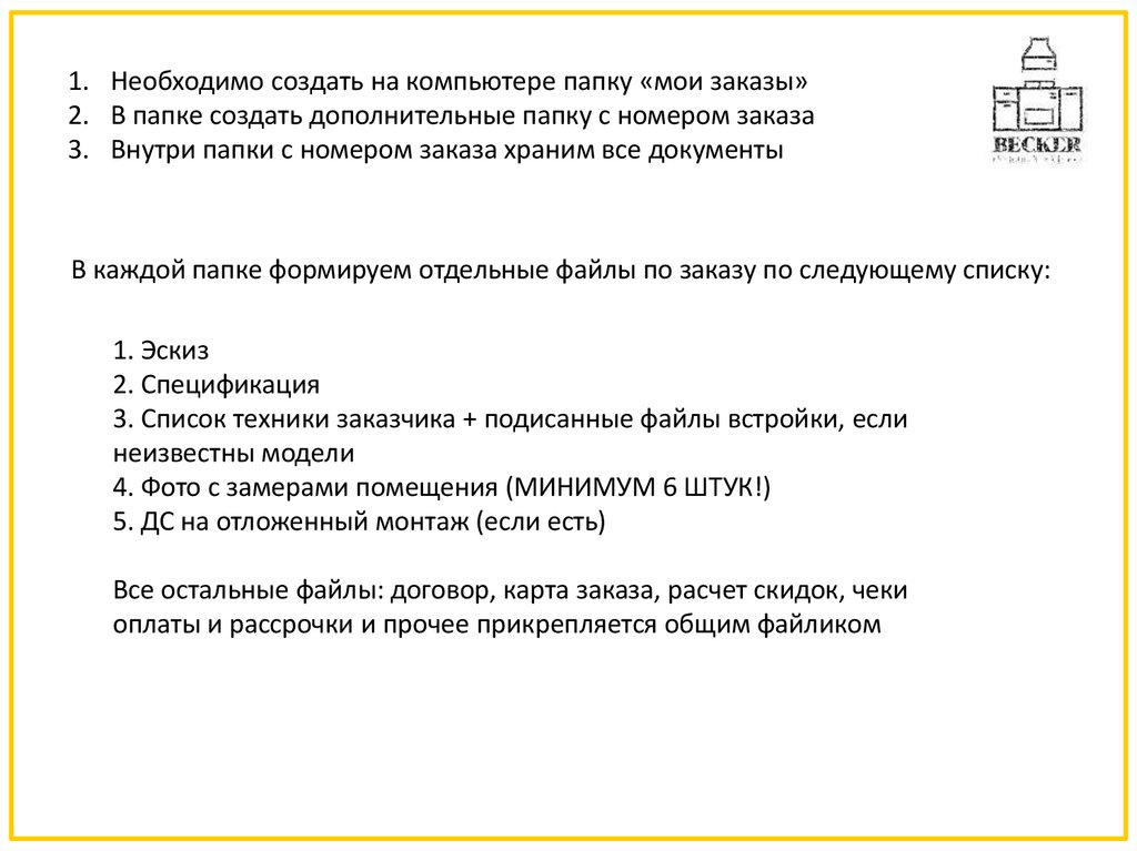 1. Необходимо создать на компьютере папку «мои заказы»2. В папке создать дополнительные папку с номером заказа