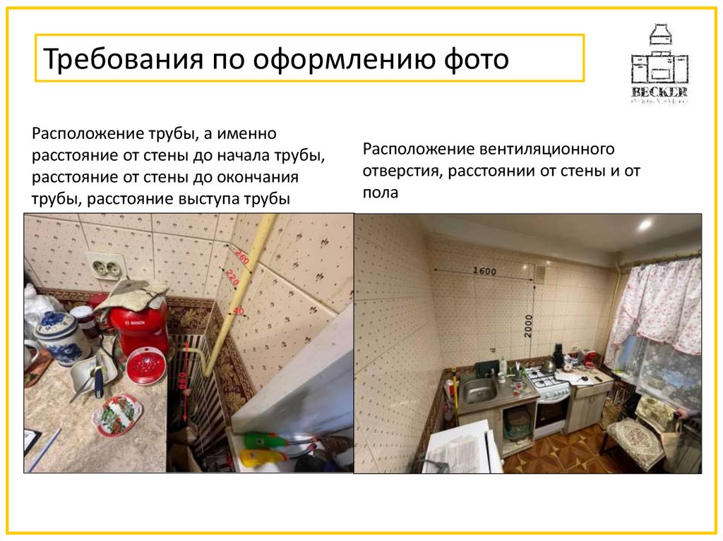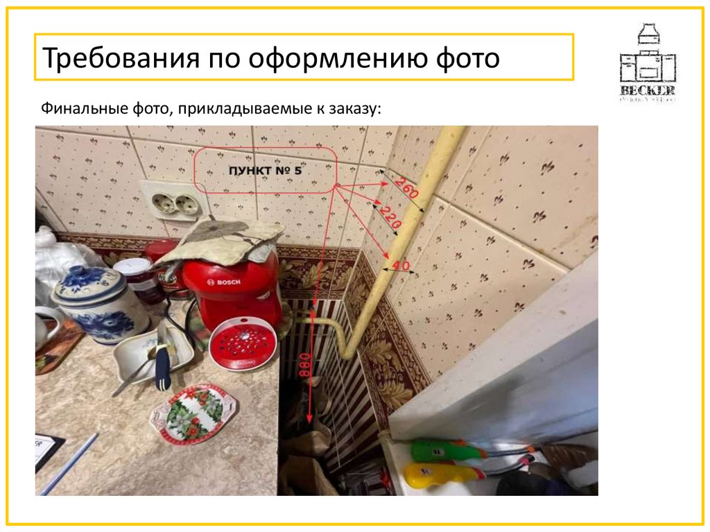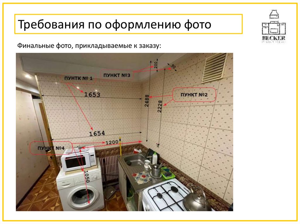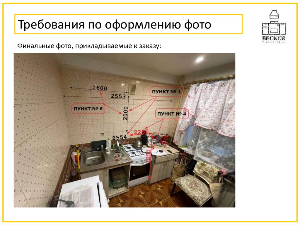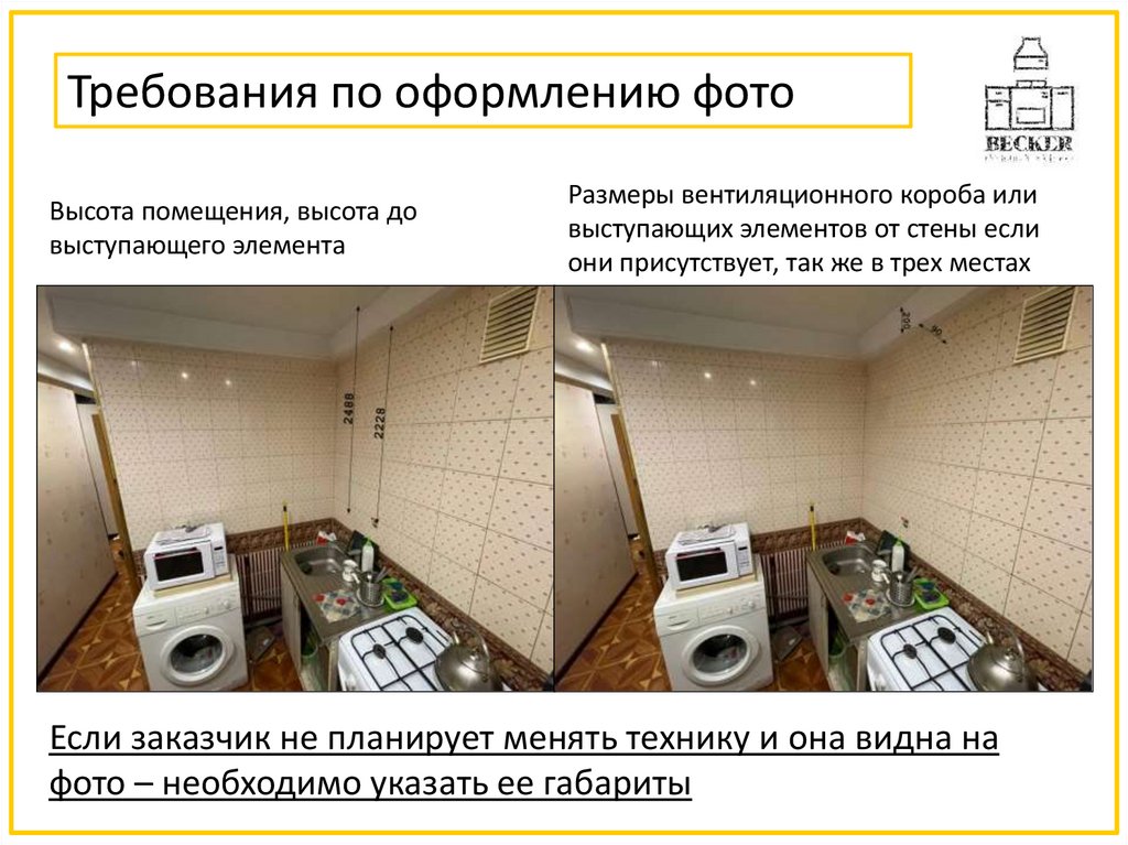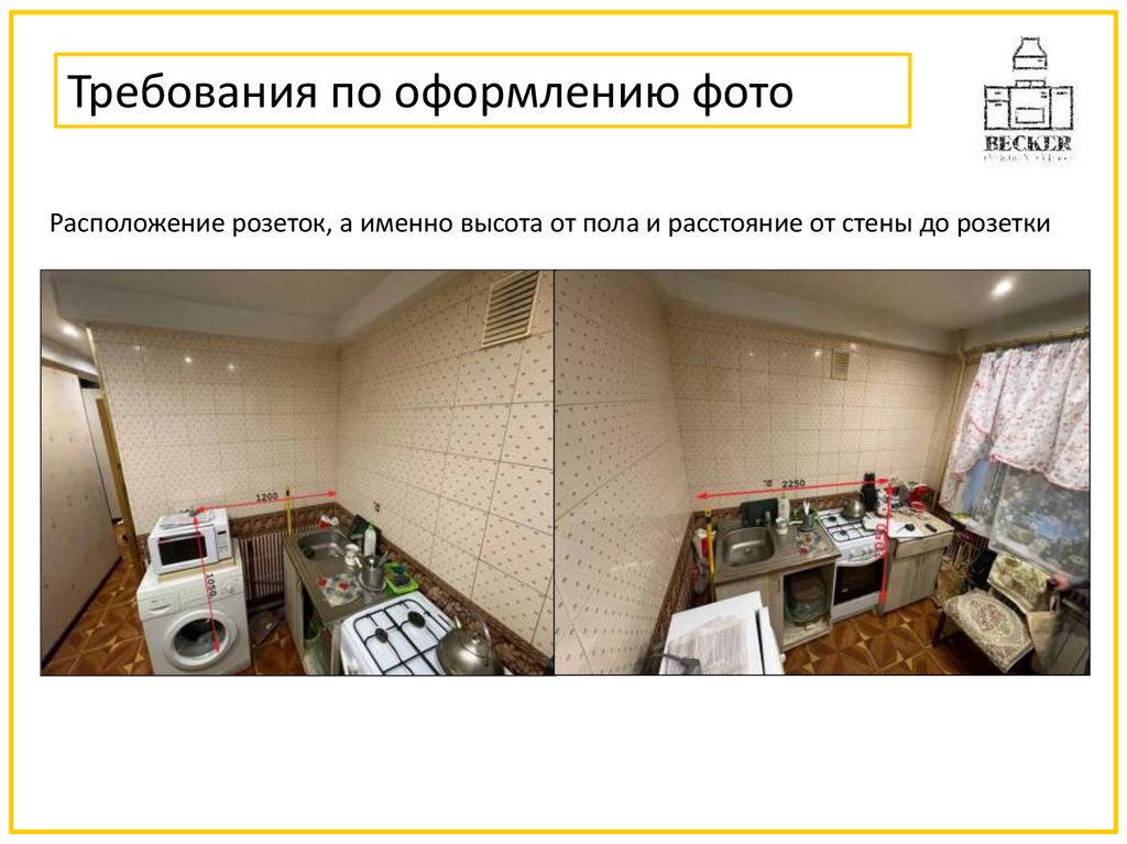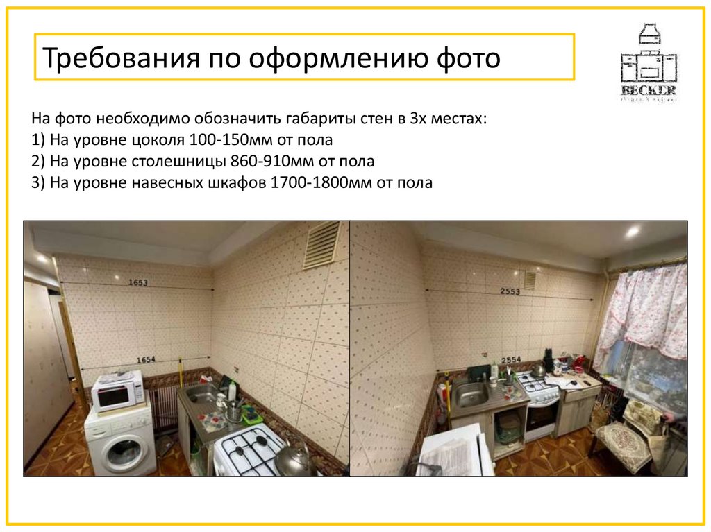 Требования по оформлению фотоНа фото необходимо обозначить габариты стен в 3х местах: