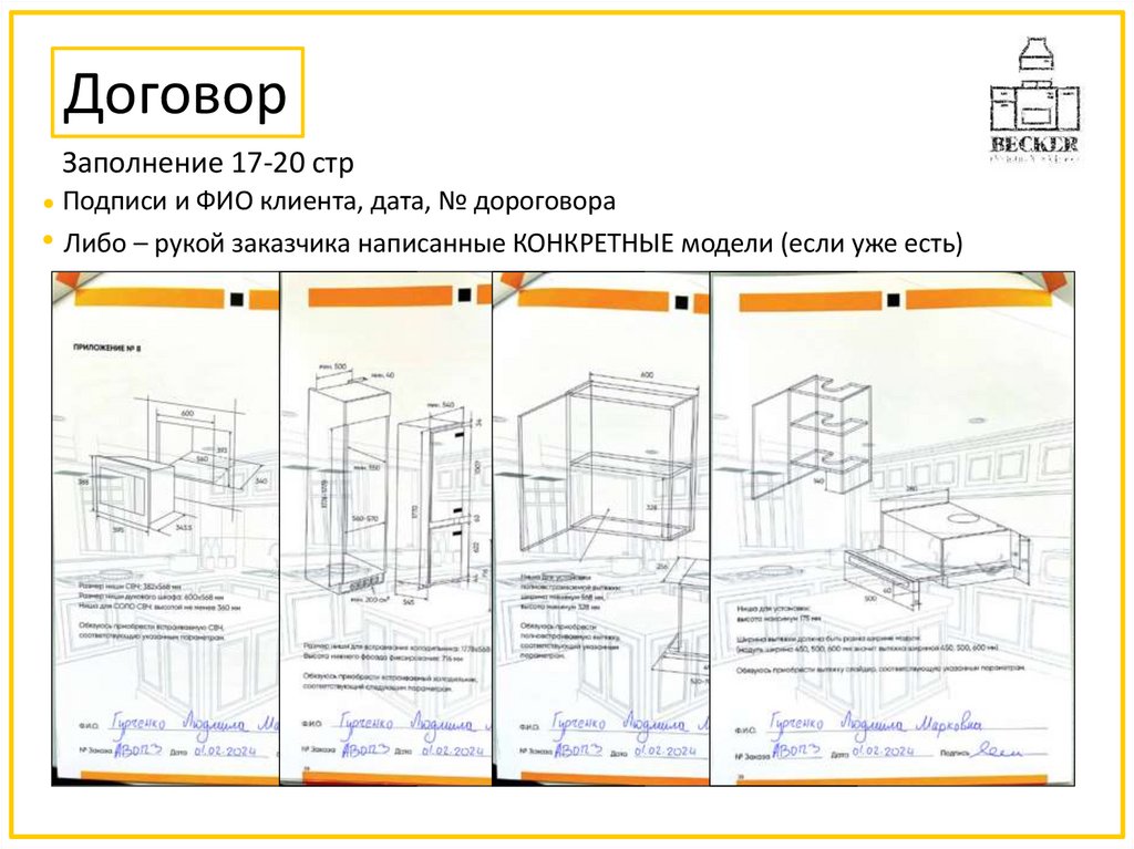 Заказчик пишет от руки, дата, подпись, обязательно!