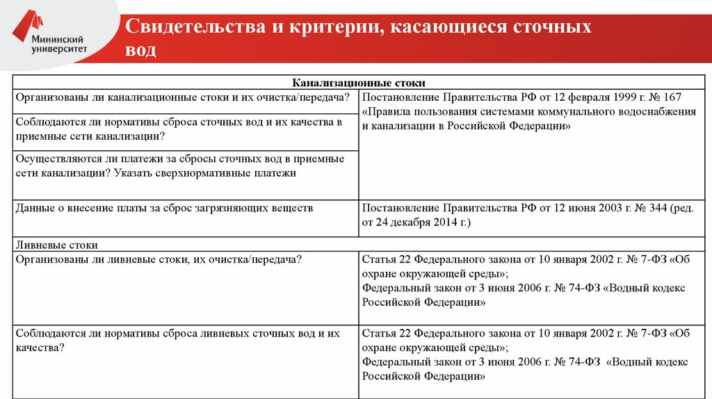 Организованы ли канализационные стоки и их очистка/передача? Постановление Правительства РФ от 12 февраля 1999 г. № 167