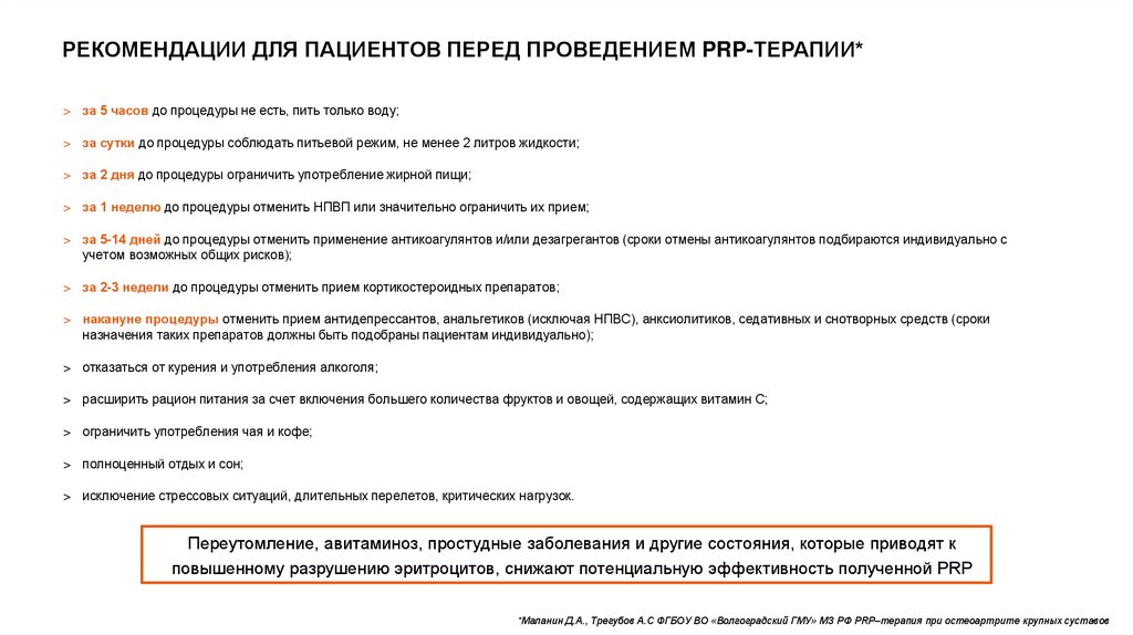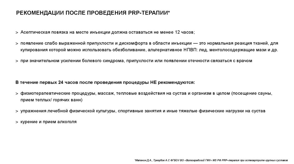 *Маланин Д.А., Трегубов А.С ФГБОУ ВО «Волгоградский ГМУ» МЗ РФ PRP–терапия при остеоартрите крупных суставов