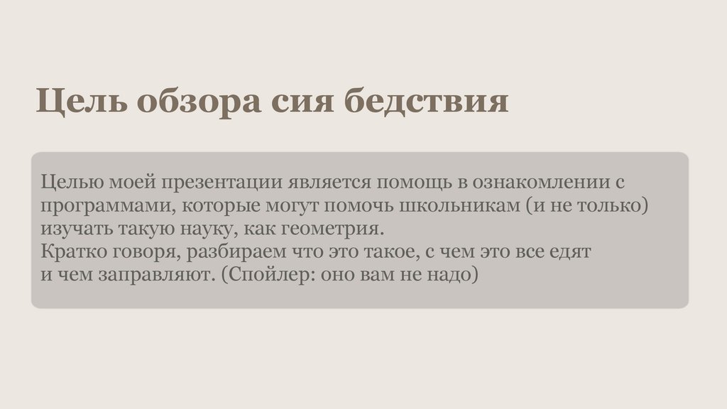 Цель обзора сия бедствияЦелью моей презентации является помощь в ознакомлении с