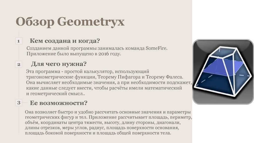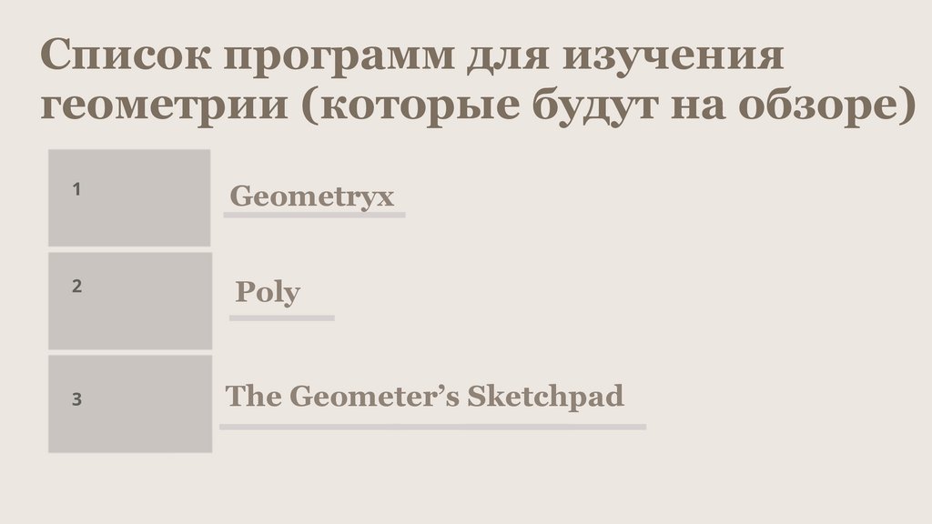 Список программ для изучениягеометрии (которые будут на обзоре)