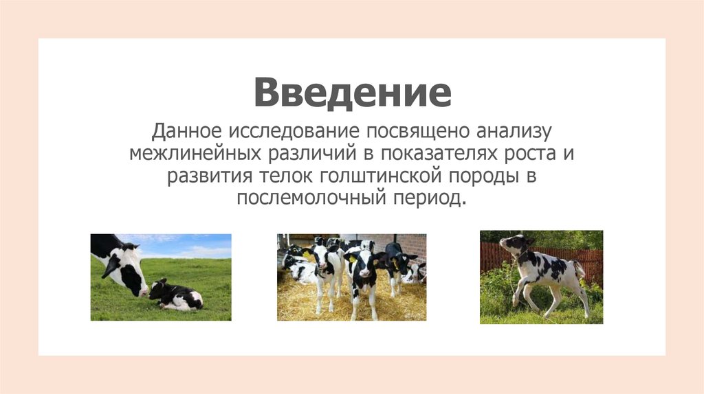 Оценка межлинейных различий энергии роста телок голштинской породы в послемолочный период