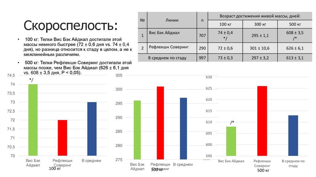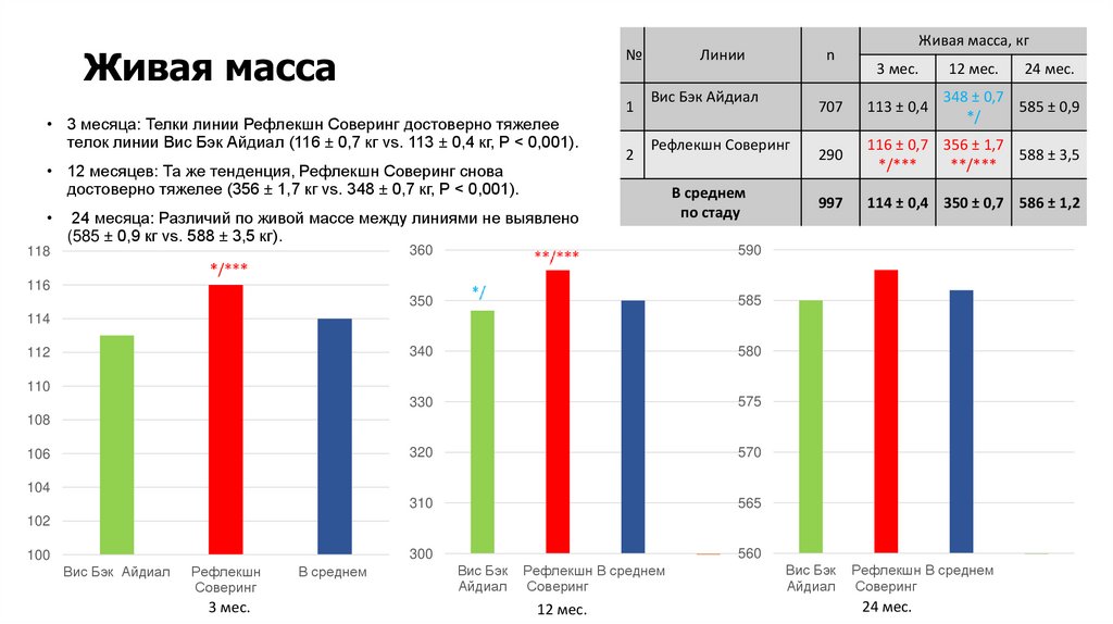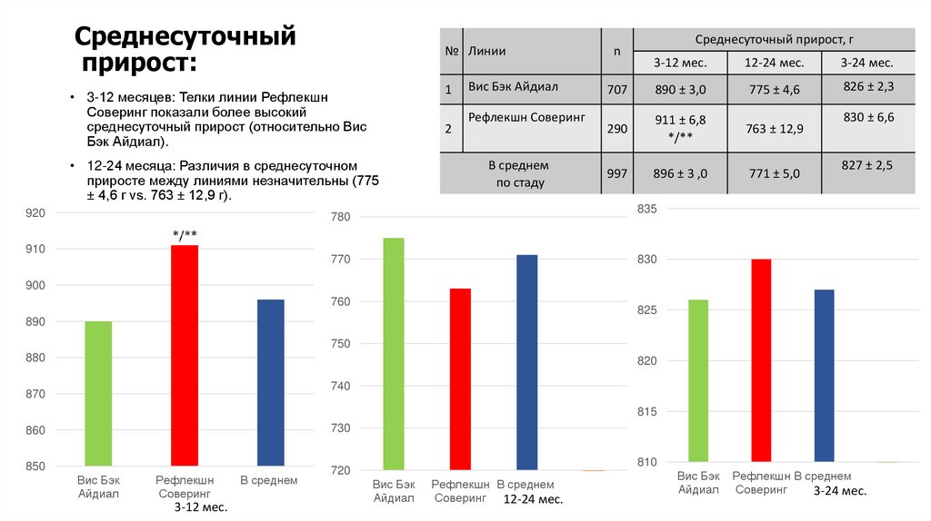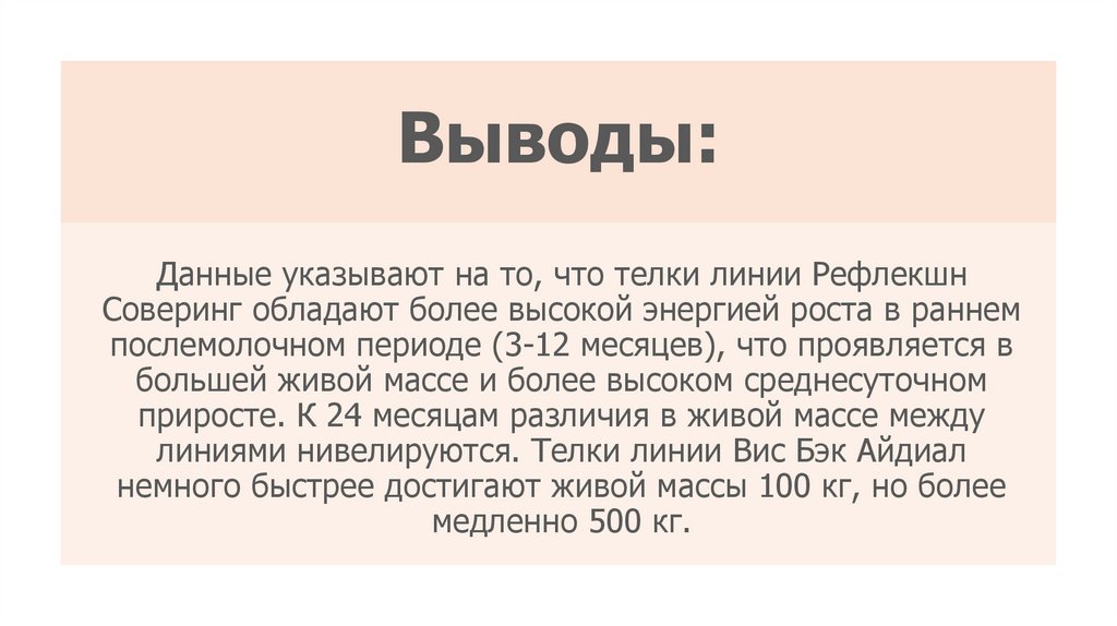 Выводы:Данные указывают на то, что телки линии Рефлекшн
