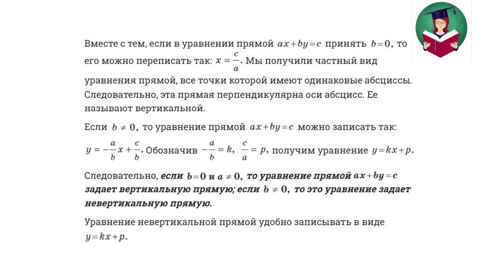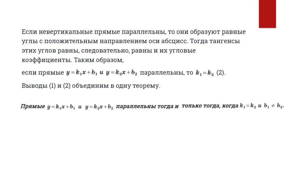 1. Уравнение прямой. Угловой коэффициент, тангенс угла наклона, параллельные и перпендикулярные прямые.