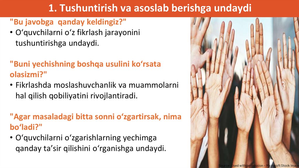1. Matematik fikrlashni rag‘batlantirish va o‘quvchilarning