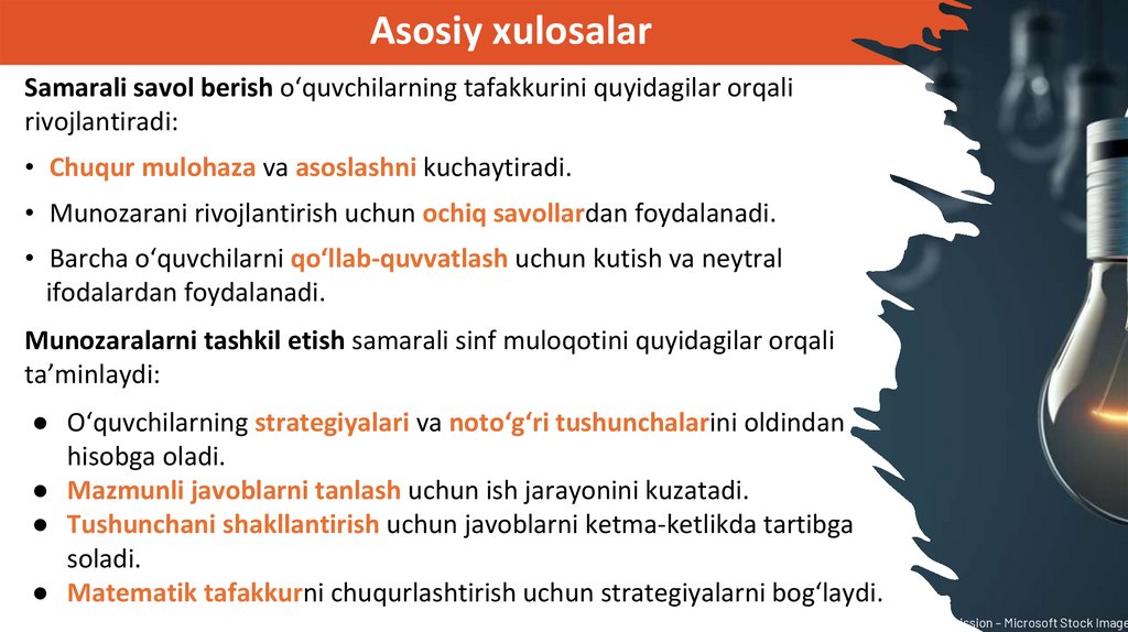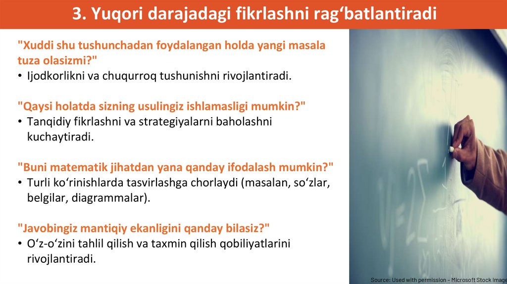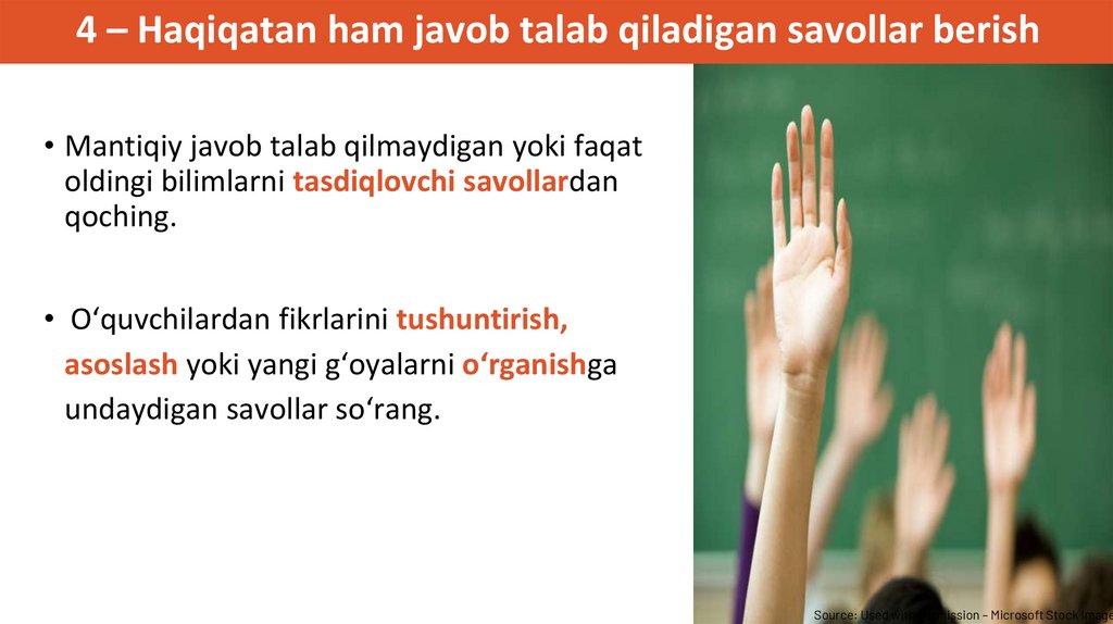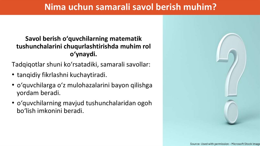 4. Samarali savol berish + Matematik muhokamalarni tashkil etish