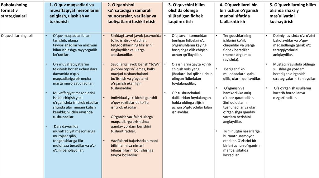 tengdoshlariga fikrmulohaza beradilar va o‘zo‘zini baholaydilar.