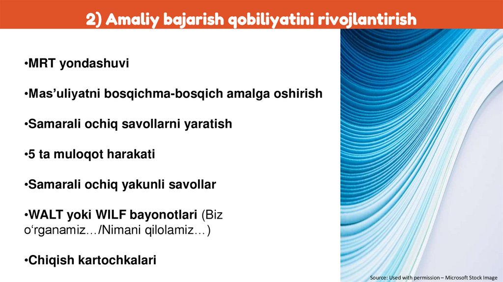 2) Amaliy bajarish qobiliyatini rivojlantirish•MRT yondashuvi