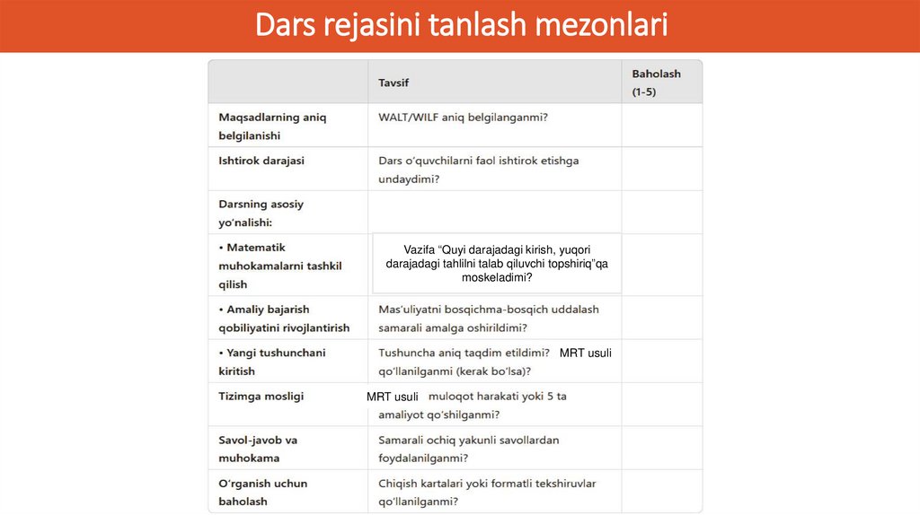 3) Yangi tushunchani tanishtirish yoki rivojlantirish•MRT yondashuvi
